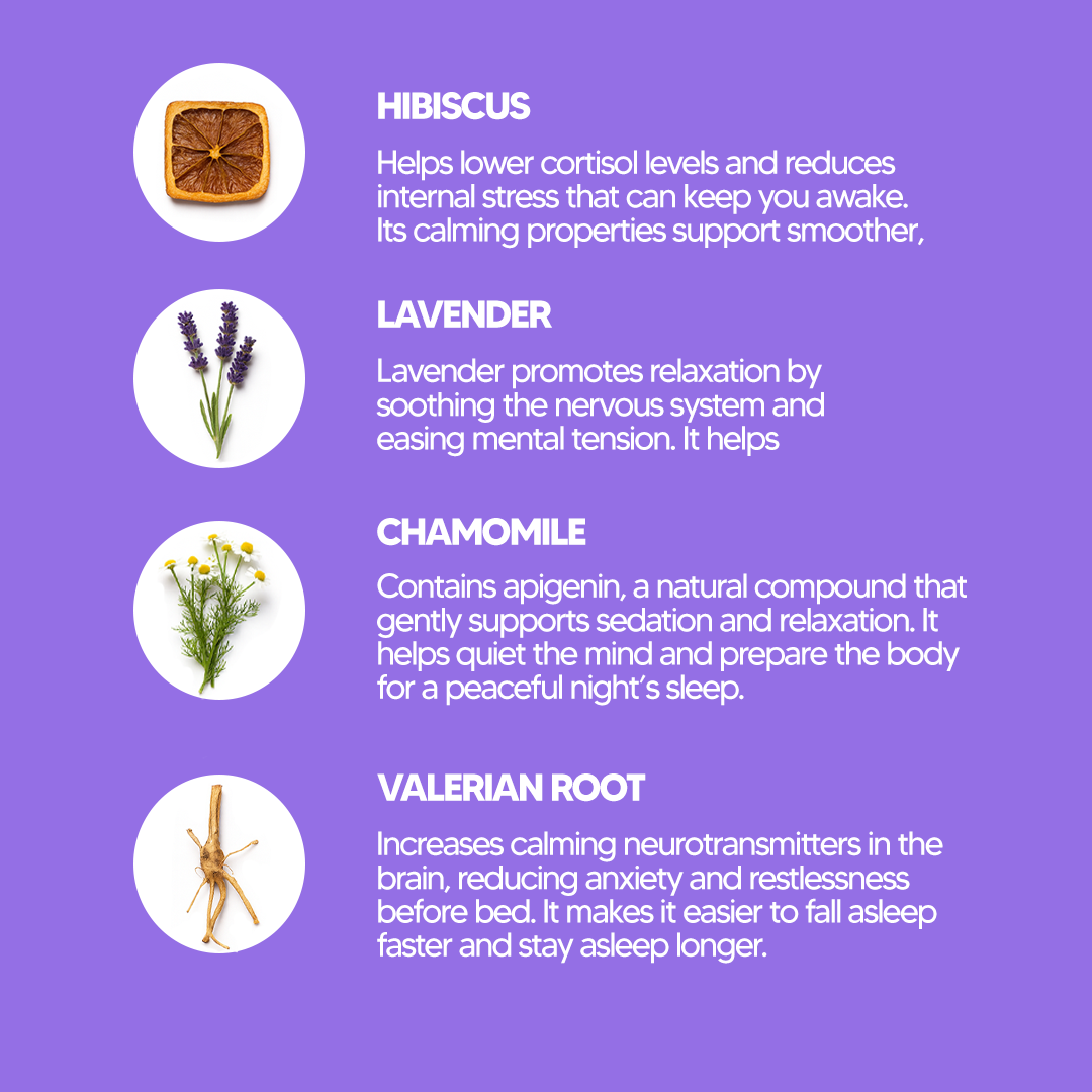 Each strip dissolves on your tongue within seconds and starts absorbing almost instantly, helping you feel calm and ready for sleep within 15–30 minutes.